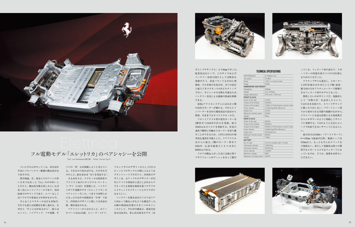 その他、ベアシャシーが先行公開されたフル電動モデル、エレットリカや39億円で落札されたデイトナSP3、イタリアのモデナで開催された、カヴァリーノ・クラシック・モデナ2025も収録。ジウジアーロがデザインしたフェラーリGG50の20周年とともに、ジウジアーロのアトリエを特別取材させていただくなど、多彩な内容と圧倒的なグラフィックで世界からフェラーリカルチャーをお届けしている。