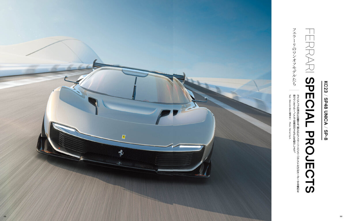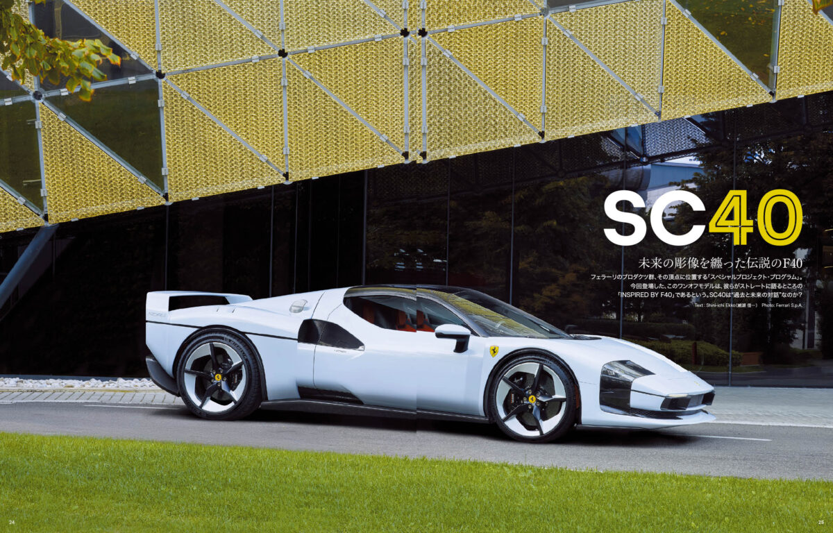 スクーデリア通巻150号記念となる2026年の冬号では表紙とグラビアにSC40を収録。伝説となるF40がオマージュとなる世界に一台のスペシャルモデルとなり、合わせて近年のスペシャルモデルとなる、SP-8、KC23、SP48を収録しています。