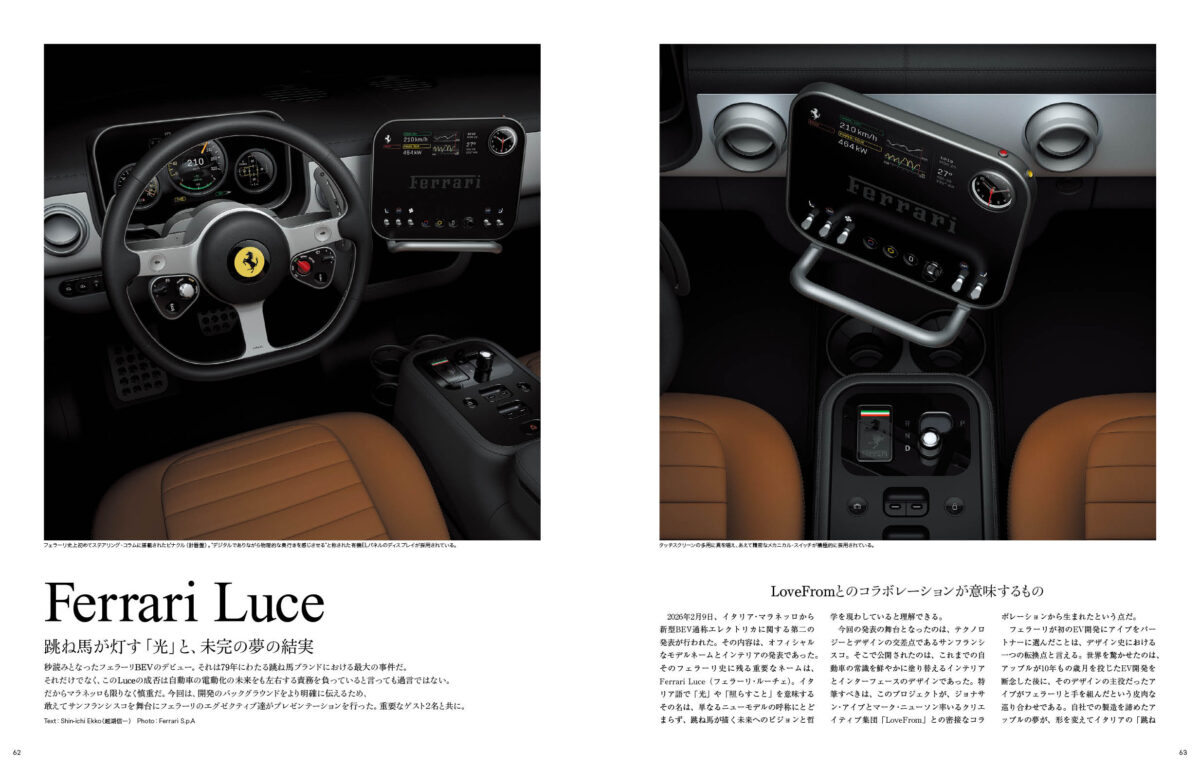 さらに2026年に35周年を迎えた「512TR」の開発秘話やスイス、サンモリッツで開催された氷上のラグジュアリーイベント、THE ICEを現地取材。クラシックフェラーリのイベントとして名高いカヴァリーノクラシックは、アブダビで開催されたミドルイースト、フロリダで開催されたパームビーチを共に紹介しています。